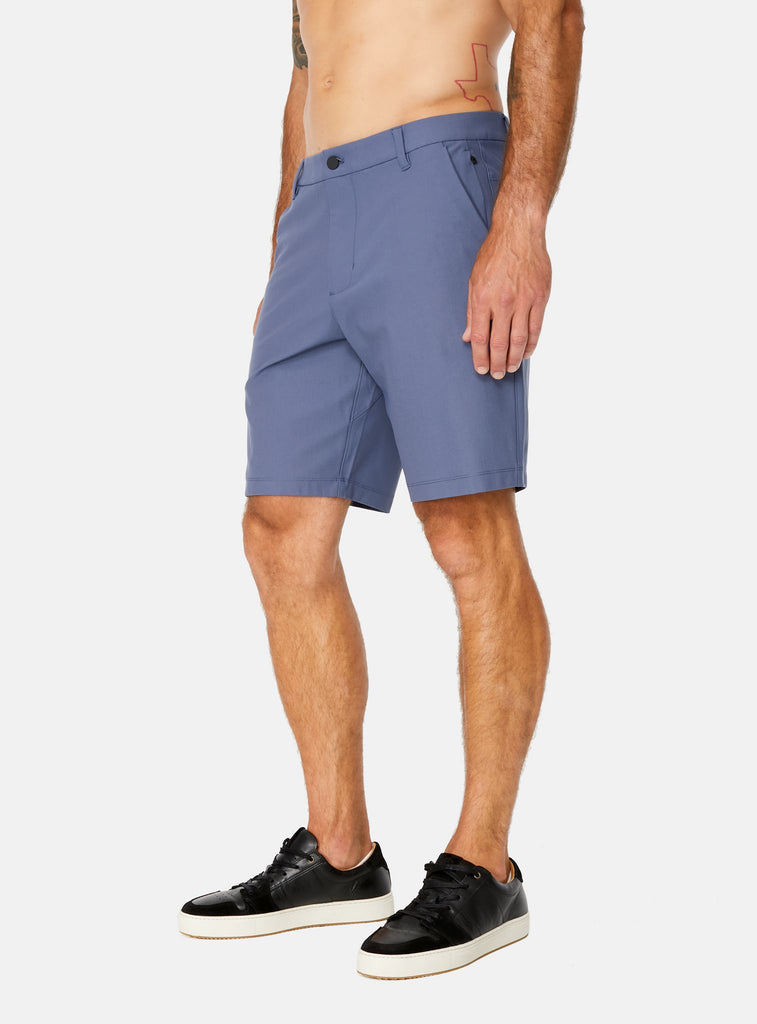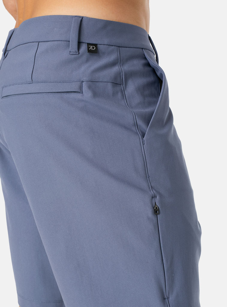Our fashion forward 7" chino short is made in our Linear Flex® technology fabric. Designed with a back pocket hidden zipper, and two stylish functional zippers on the front to hold all of your valuables. This highly versatile short will keep you comfortable, functional, and looking polished.