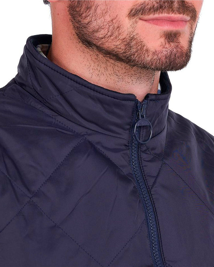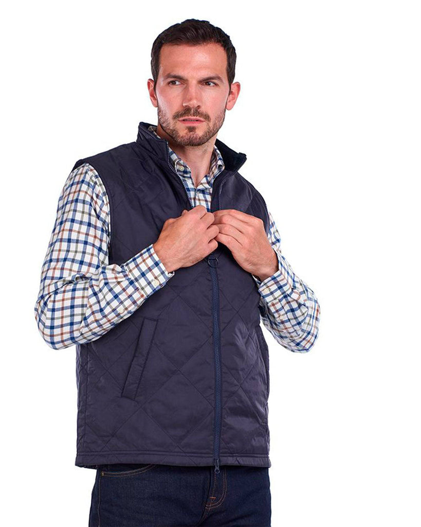 An essential quilted layering piece, this generously cut Barbour Finn Gilet wears easily over a sweater. Box quilted outer with front zip and two lower welt pockets. Lined in Barbour's classic tartan with an Interior hook-and-loop close pocket. Corduroy on inner collar stand. Polyamide. Washable.