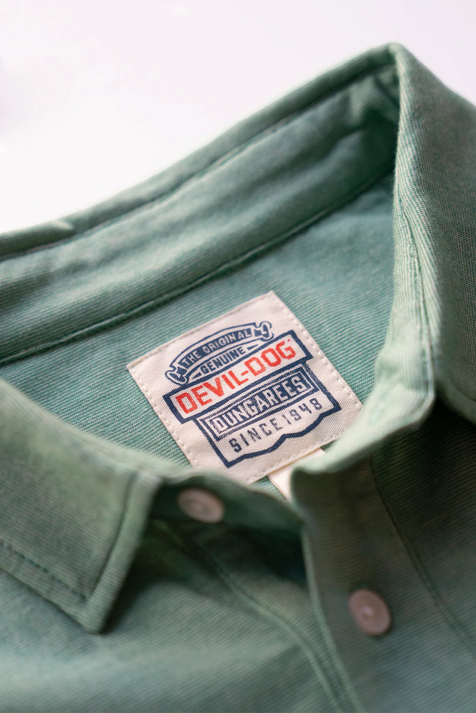 Devil Dog Feeder Stripe Polo In Farmers Sage