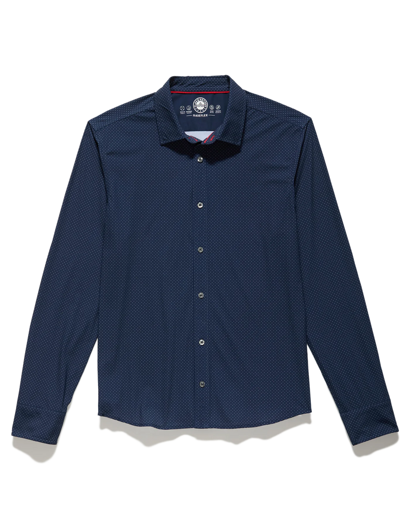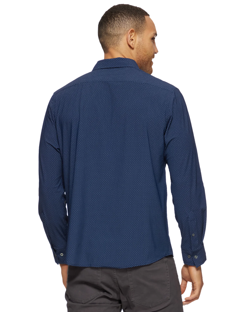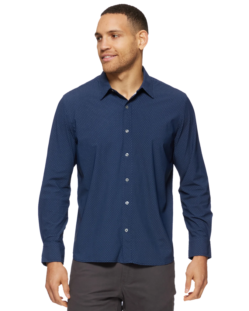 A game-changing combination of comfort and style, our Journey Shirt was designed with unparalleled stretch and the polished look of a traditional button-down. Lightweight, breathable, sweat-wicking, and wrinkle-free, this exceptional stretch shirt goes beyond the 9-5 and is well-equipped for active days. Impeccably tailored and cut in the perfect untucked length, it moves and flexes with you and never clings to your body or gets in your way. Better yet, our four-way stretch fabric was made to be laundered at home so you can throw it straight into the washing machine and spend less time between wears. Contrast fabric inside back yoke, sleeve cuffs, and sleeve plackets. Tailored athletic fit.