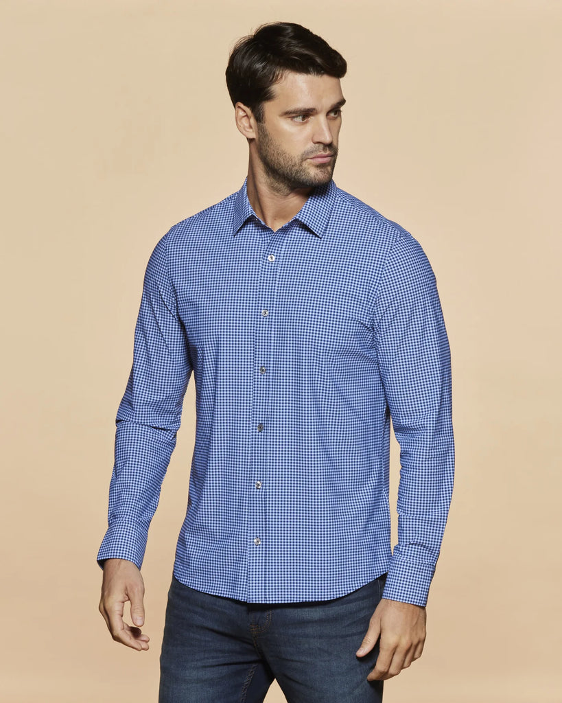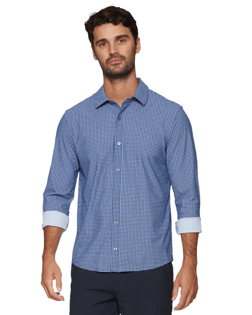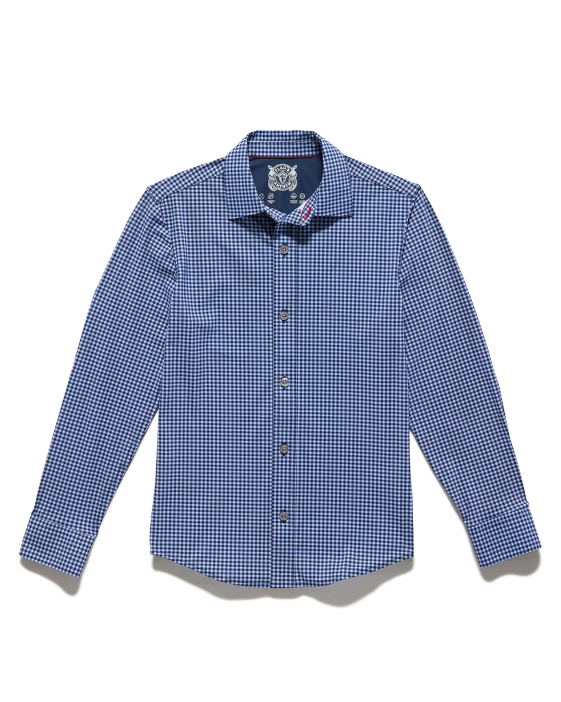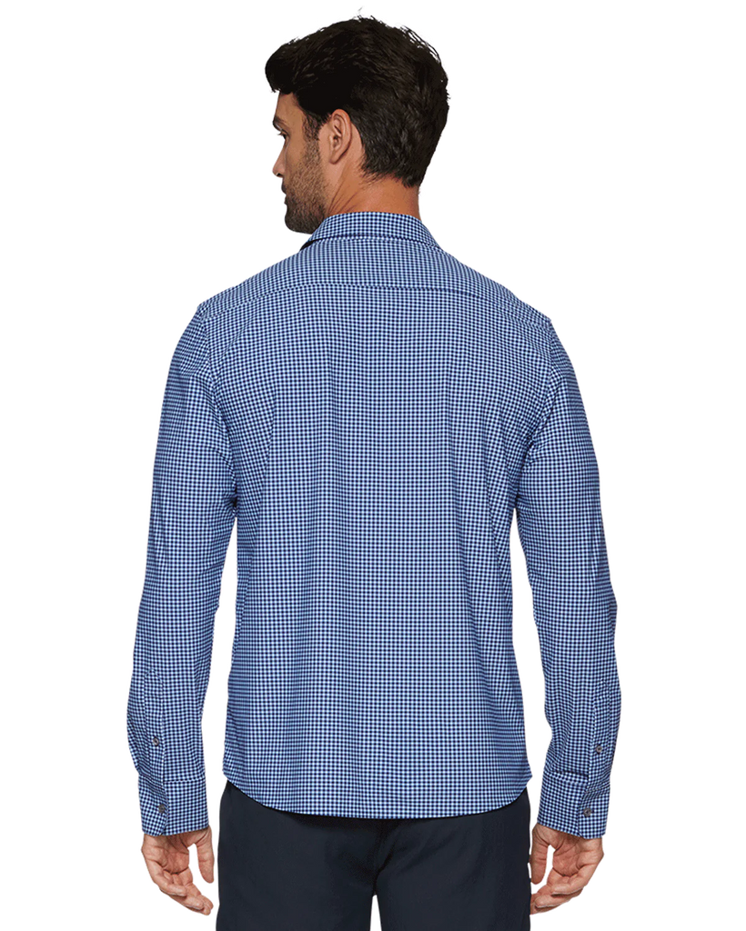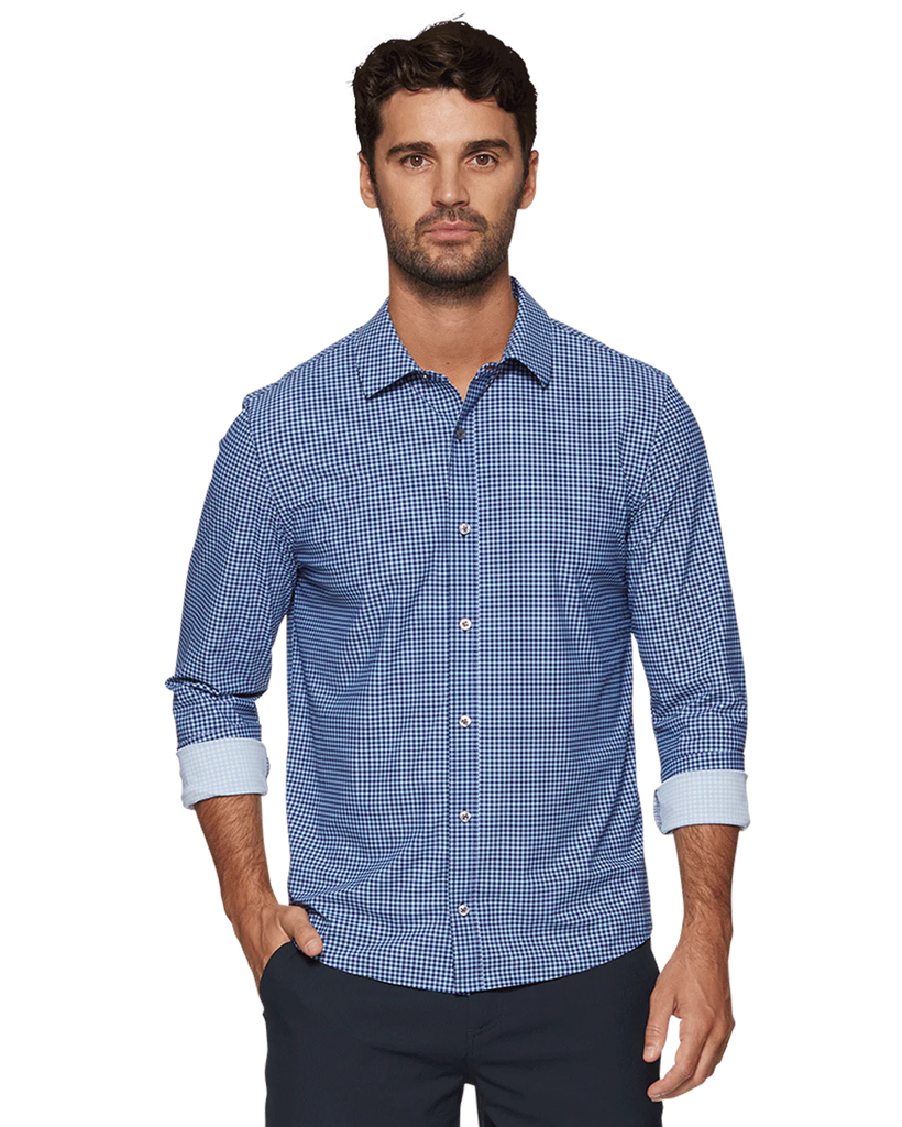 A game-changing combination of comfort and style, our Journey Shirt was designed with unparalleled stretch and the polished look of a traditional button-down. Lightweight, breathable, sweat-wicking, and wrinkle-free, this exceptional stretch shirt goes beyond the 9-5 and is well-equipped for active days. Impeccably tailored and cut in the perfect untucked length, it moves and flexes with you and never clings to your body or gets in your way. Better yet, our four-way stretch fabric was made to be laundered at home so you can throw it straight into the washing machine and spend less time between wears. Contrast fabric inside back yoke, sleeve cuffs, and sleeve plackets. Tailored athletic fit.