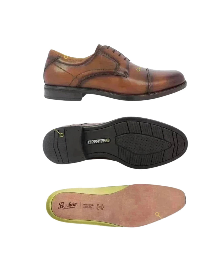 Our Midtown Collection combines enduring styles and the latest in comfort technology. With modern profiles and features like Ortholite® high rebound foam insoles and rubber Comfortech soles, these updated classics are designed to feel as good as they look. The beautifully burnished Florsheim Midtown Cap Toe Oxford is a worthy addition to the collection. Whether you're in or out of town, workweek, or weekend, the Midtown is the place where comfort and style meet.