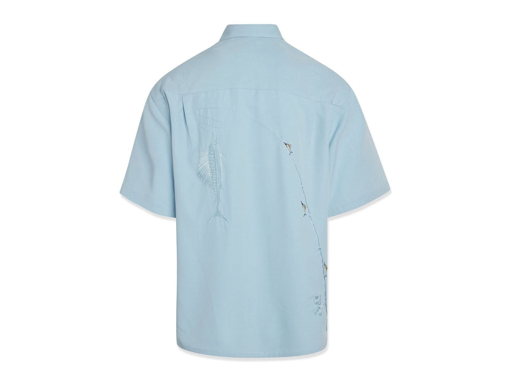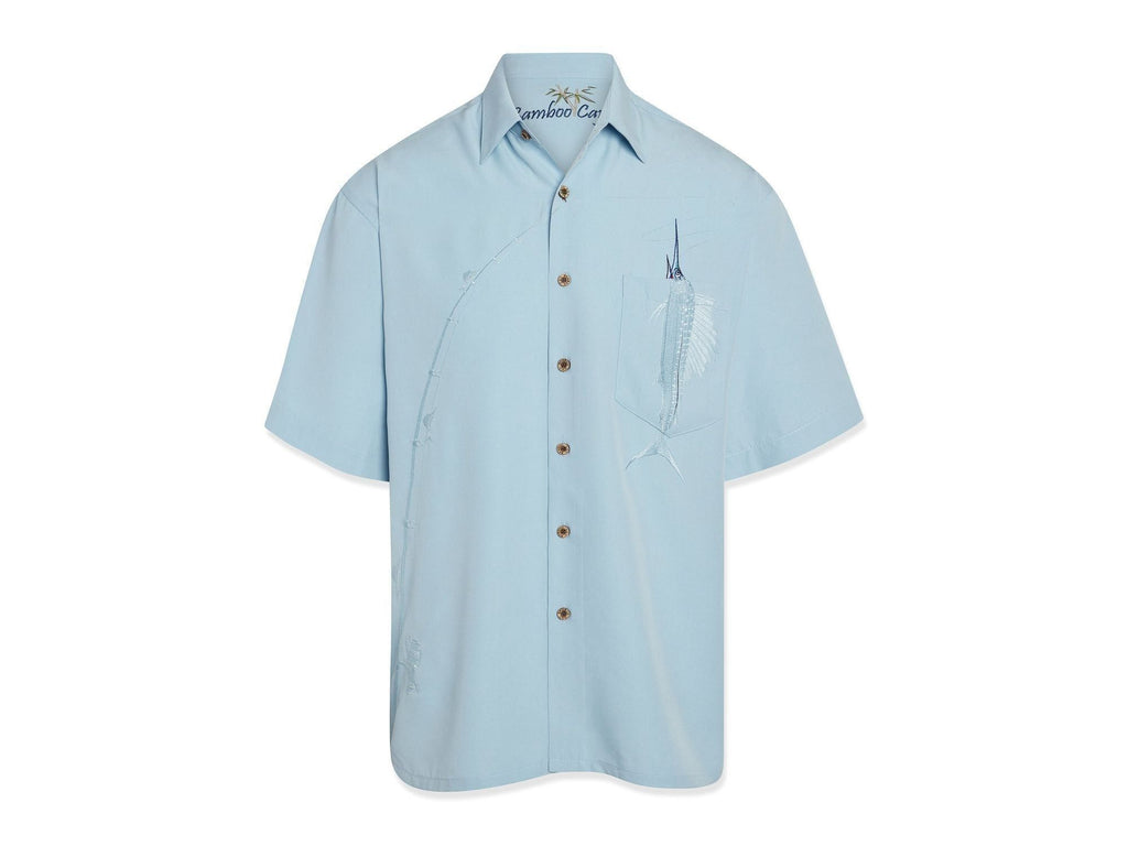 On island time in this button-down from Bamboo Cay, featuring embroidered tonal leaves at wearers chest, button-front closure with authentic coconut buttons and a pointed collar. Modal blended Bamboo Cay fabric gives you an island inspired vacation feeling while worn. Living the island life since 1998, Bamboo Cay designs resort wear with premium materials and tropics inspired embroidered motifs.