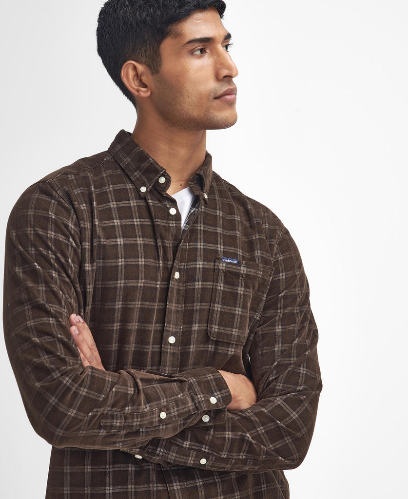 The Barbour Harthill Tailored Long Sleeved Shirt is crafted premium micro cord with a subtle country check for a smart-casual look. This shirt offers a left chest pocket and is finished with a Barbour and Shield label, giving it a profile that's perfect for pairing with jeans and trainers for an off-duty look.