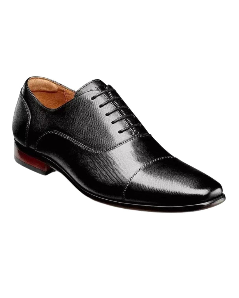 • The Florsheim Postino Cap Toe Balmoral Oxford’s sleek profile gives it a modern air that is further enhanced by the textured scratch print leather upper and stacked heel. And with its rubber sole with Flexsole technology it also delivers out-of-the-box comfort.