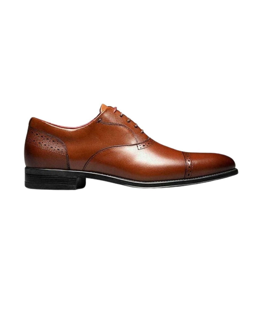 The Stacy Adams Heath Cap Toe Oxford takes a classic design and updates it with a sleeker profile, geometric perfing details, and an embossed leather collar. Together they give this shoe a versatile look that can be worn with everything from a suit to jeans.