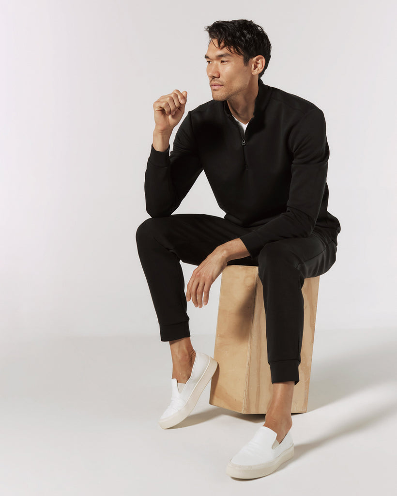 A contemporary jogger that features an elastic waist with drawstrings and back pockets with hidden zippers. Softer-than-ever and super comfortable, perfect for all-day wear.