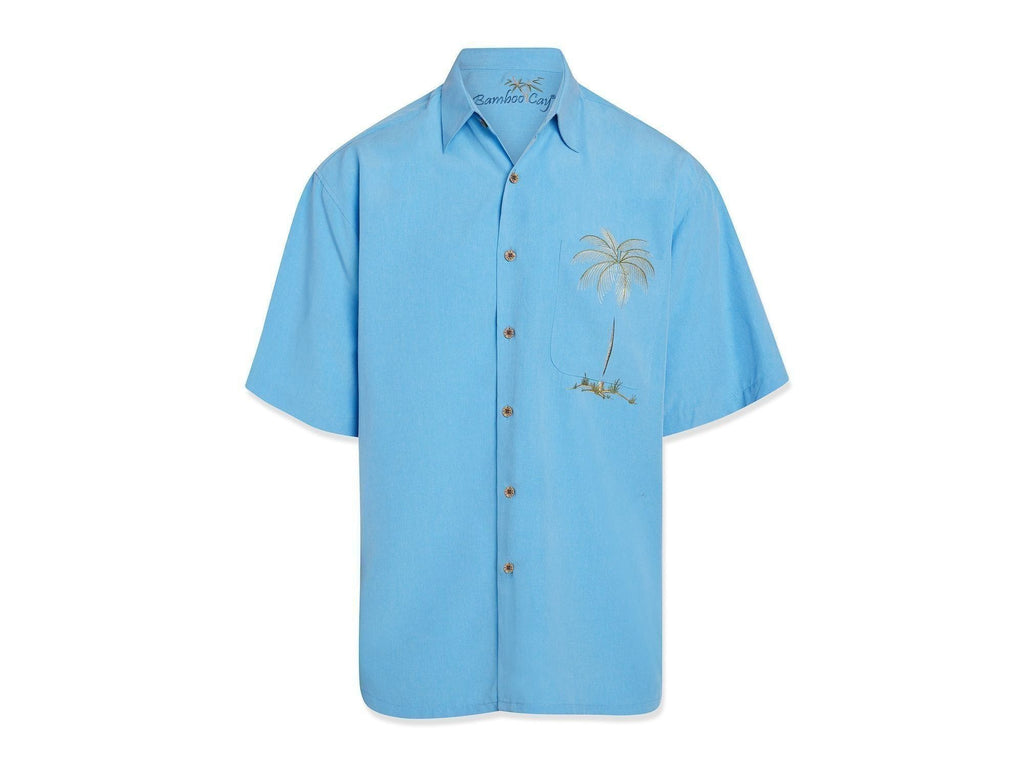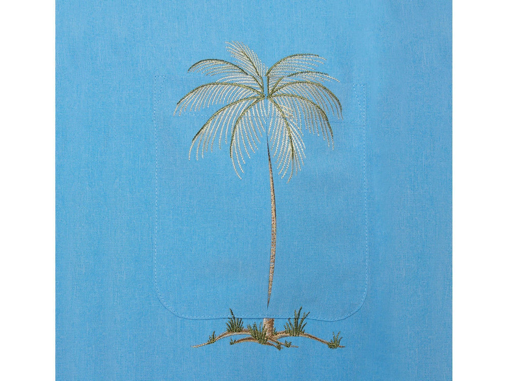 Front embroidered sophisticated camp shirt with a one-of-a-kind front pocket featuring a slit opening. The bark of the palm tree are embroidered inside the slit and on the exterior portions of the pocket are the palm tree leaves and stems. A very subtle and clean cap shirt was made by us. Be the best-dressed man in the room without any effort. Many compliments to come your way. Features a point collar and comfortable side vents to allow you to wear it on any occasion. This Bamboo Cay shirt will get you noticed without drawing attention to yourself.