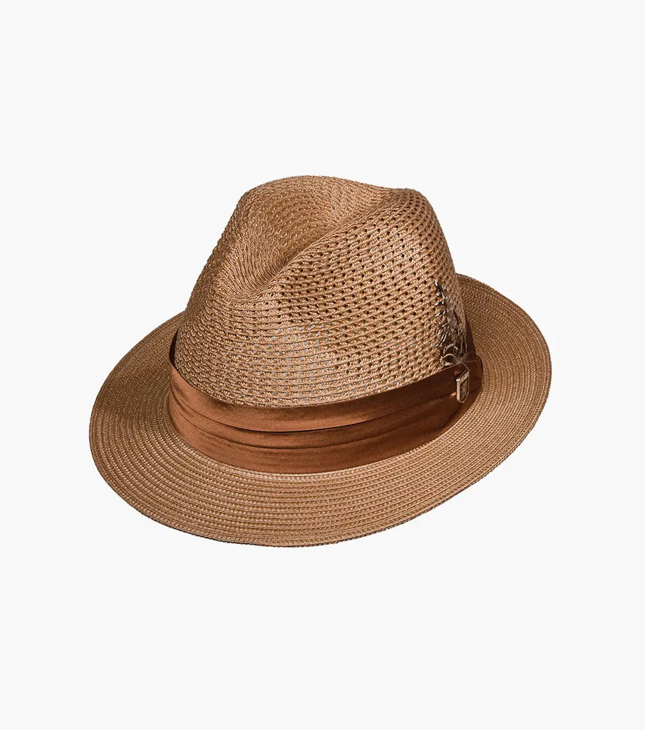 Stacy Adams Dublin Fedora Straw Poly Braided Pinch Front Hat In Cognac