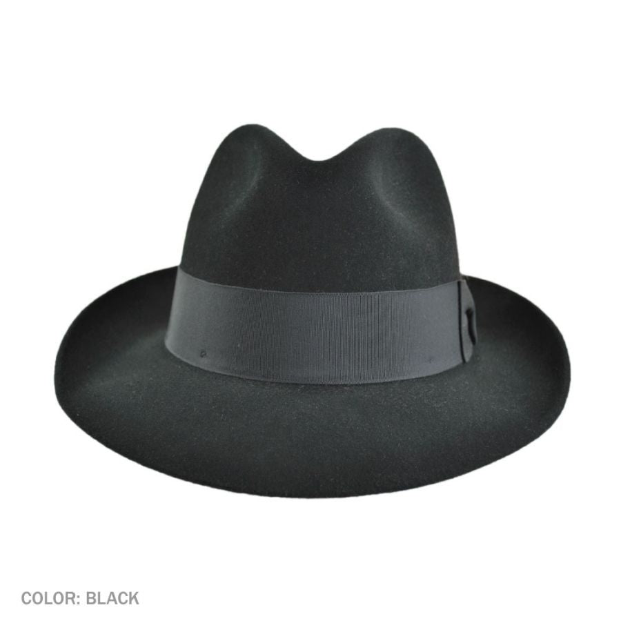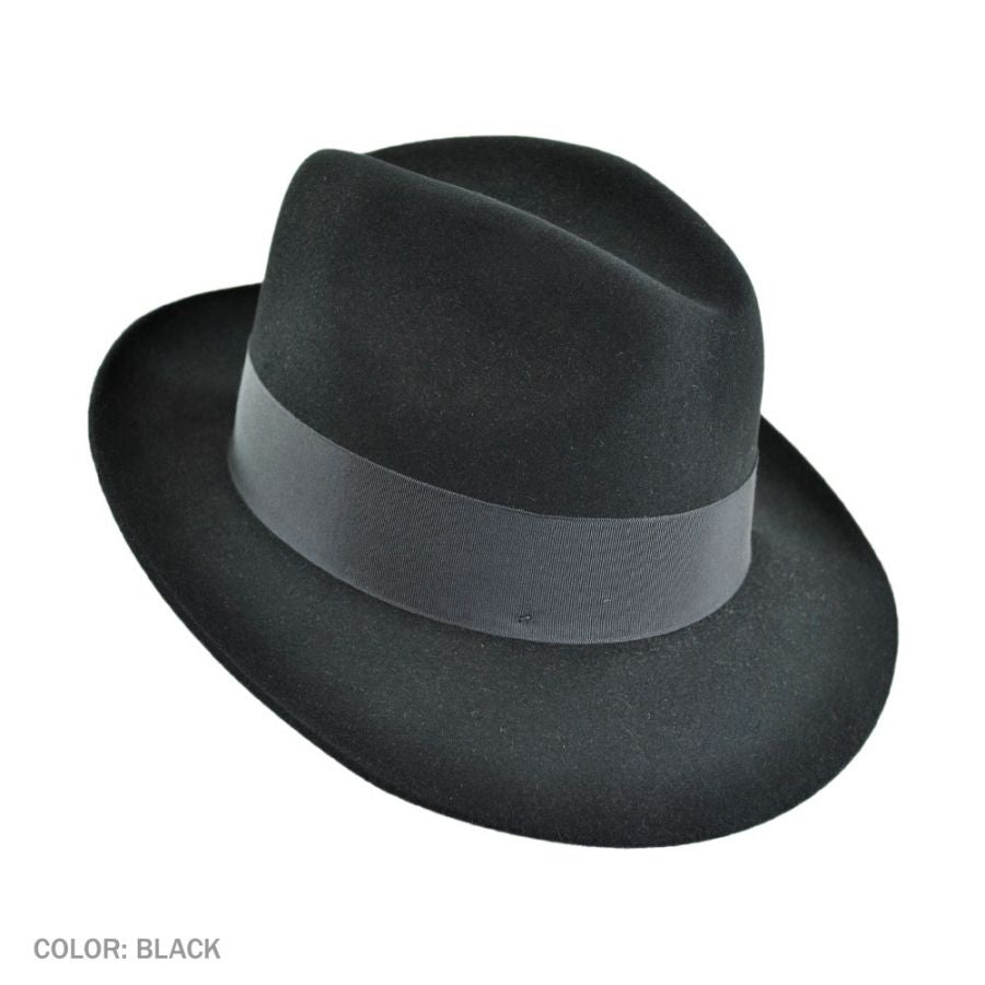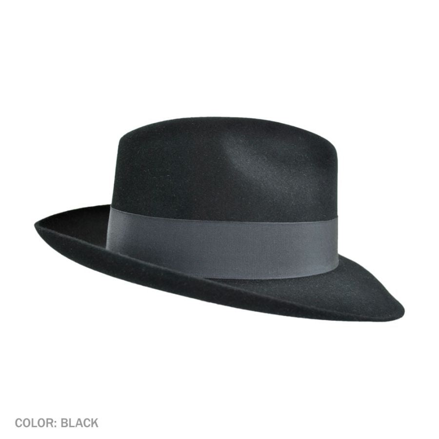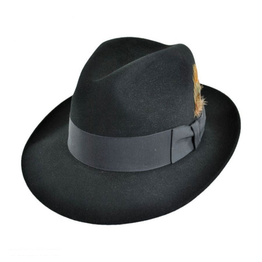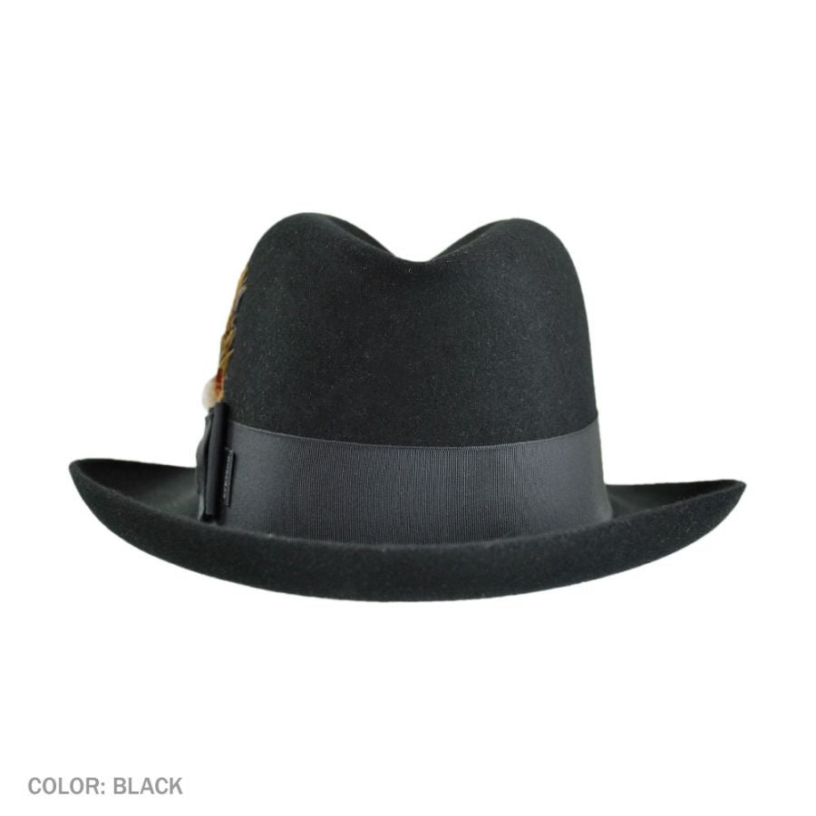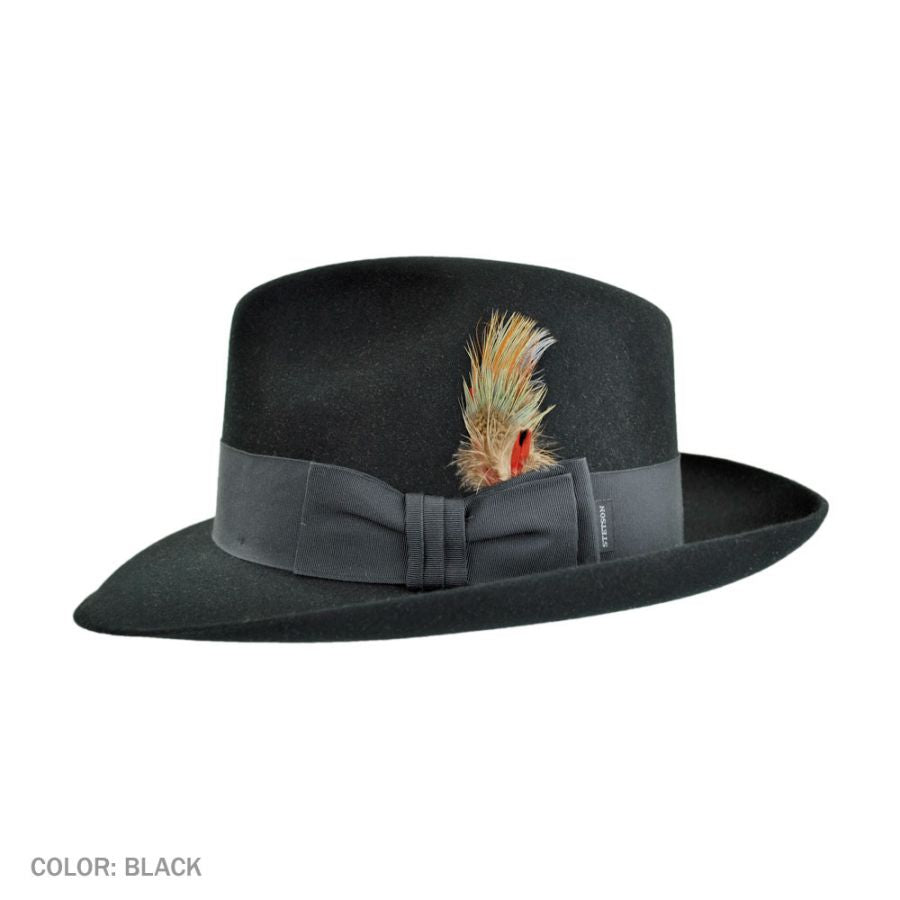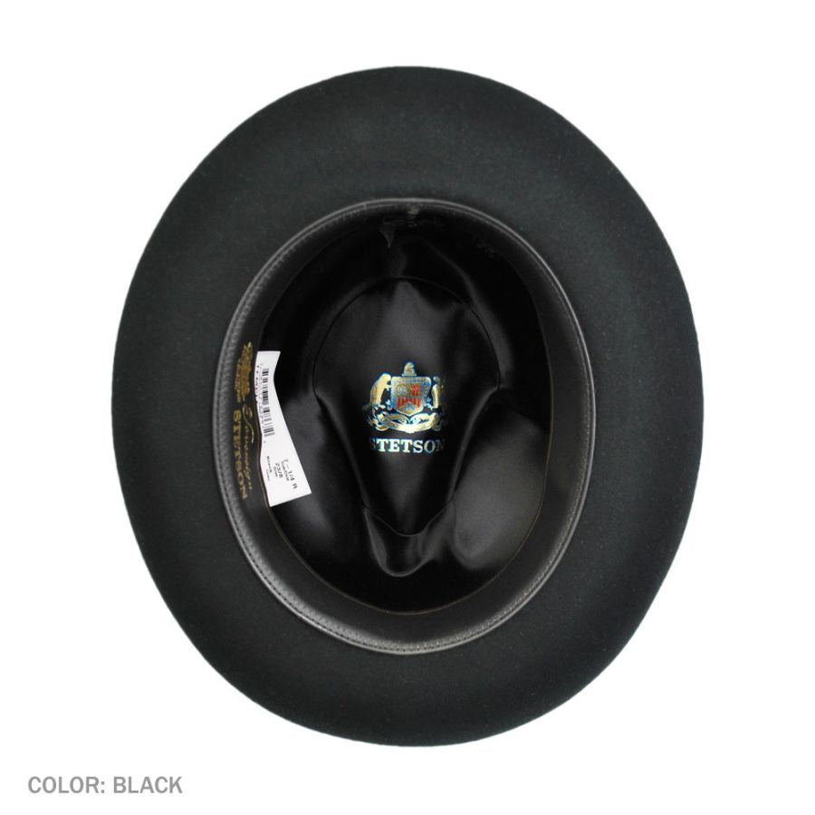 A nod to the 1940s jazz bars of New York City. An icon in its own right, the Temple is a statement of distinctive style. Made from quality felt, it features a center pinch front crown and a wide grosgrain ribbon hat band. On the interior, a roan leather sweatband and satin lining stamped with the Stetson mark finishes things off.