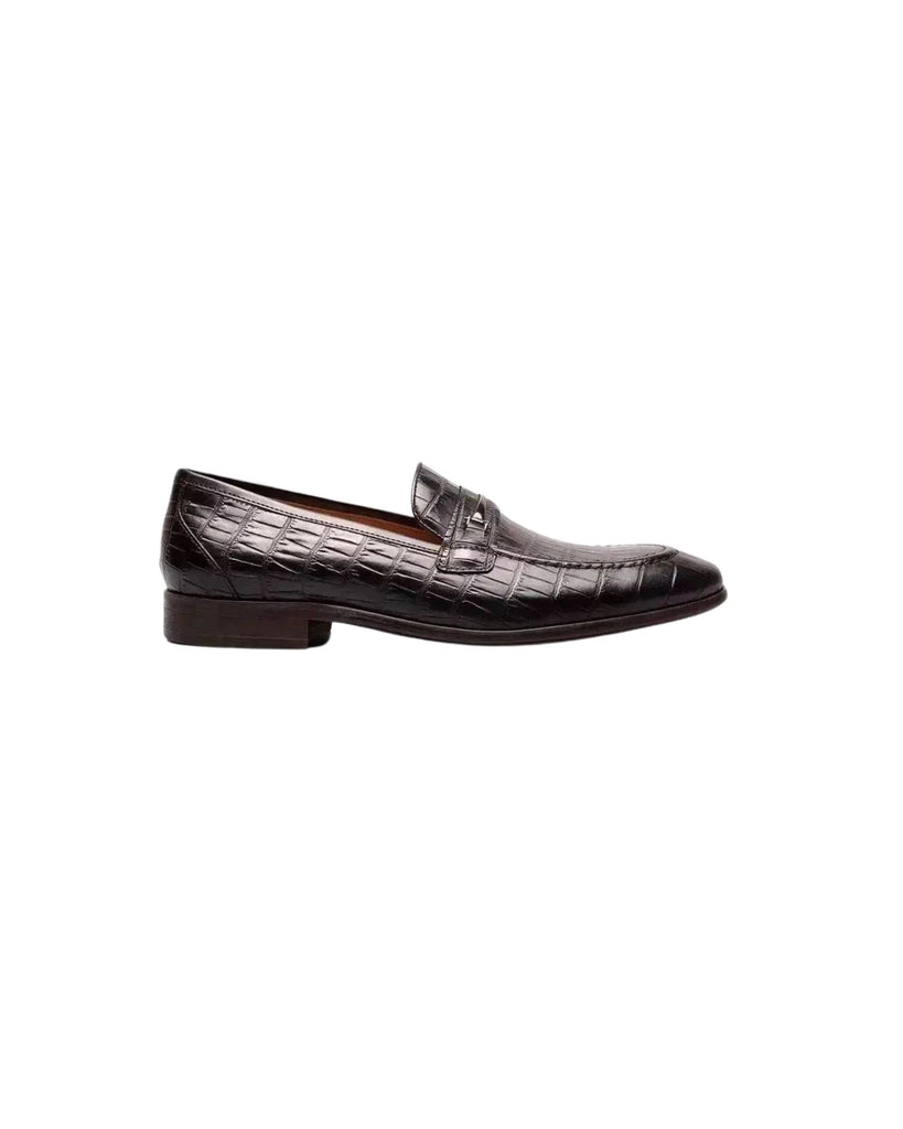 Turn heads in the Stacy Adams Ferdinand Moc Toe Bit Slip On. The sleek silhouette of the loafer is given a certain edge that comes from its large croco print leather upper and stylish bit. For all-day comfort, it features breathable leather linings and a fully cushioned Memory Foam footbed.