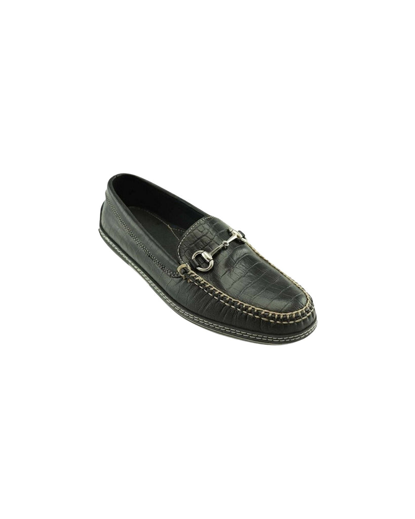 Offering all the style and durability of genuine crocodile but at a fraction the price, this classic driving moccasin can be easily dressed-up or down, as the occasion calls for it. Handsewn upper featuring Italian polished crocodile embossed leather with chrome horse bit detail. A non-skid rubber mudguard outsole extends up the heel and around the shoe, making it suitable for all weather conditions. Leather-wrapped comfort cushioned insole and rubber outsole with enhanced traction offers both form and function.