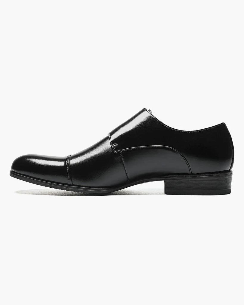 The coolest of the classics, the double monk strap brings a bit of edge to any look. The Stacy Adams Gordon Cap Toe Monk Strap takes the original design and adds modern touches like a sleek profile, a rich leather upper, gunmetal buckles, and a simple cap toe.