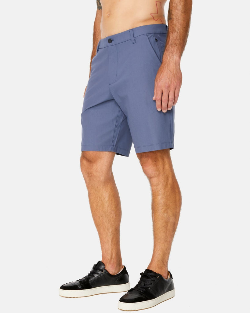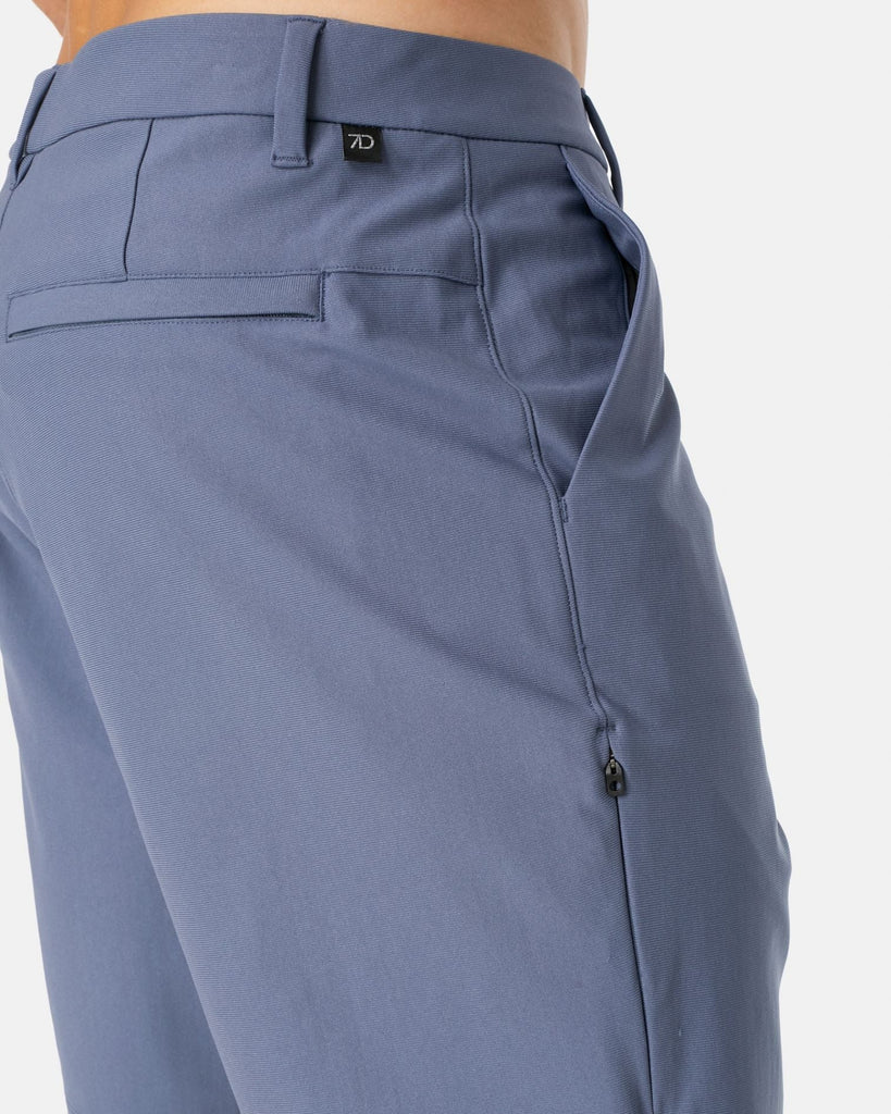 Our fashion forward 7" chino short is made in our Linear Flex® technology fabric. Designed with a back pocket hidden zipper, and two stylish functional zippers on the front to hold all of your valuables. This highly versatile short will keep you comfortable, functional, and looking polished.