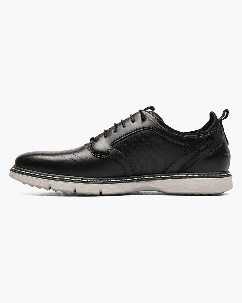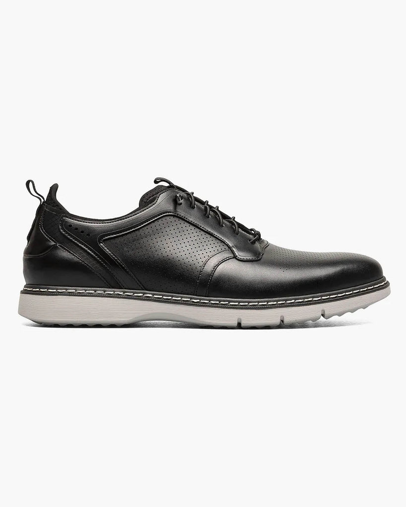 A hybrid mix of sneaker and dress shoe, the Stacy Adams Sync Plain Toe Elastic Lace Up features a rich leather upper with micro-perfing details. The elastic lace system gives it slip on convenience, while the RedZone footbed adds all-day comfort.