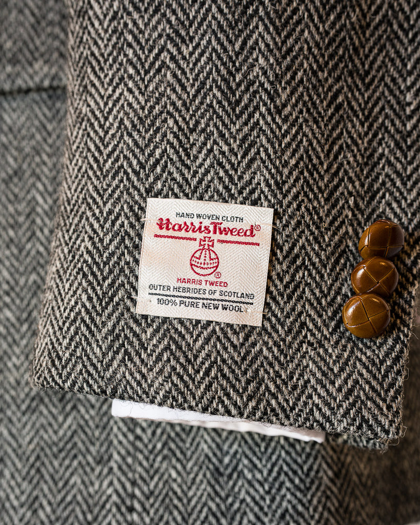 Crafted from genuine Harris Tweed handwoven in the Outer Hebrides of Scotland, this sport coat features a classic grey herringbone pattern with subtle natural flecking for depth and character. Its versatile mid-grey tone pairs effortlessly with denim, chinos, or wool trousers, making it a dependable choice for year-round wear. Designed in a classic two-button silhouette with a traditional center vent and made from 100% pure new wool, this coat delivers durability, warmth, and the timeless appeal of authentic Harris Tweed. A refined staple that fits seamlessly into both casual and dress wardrobes.