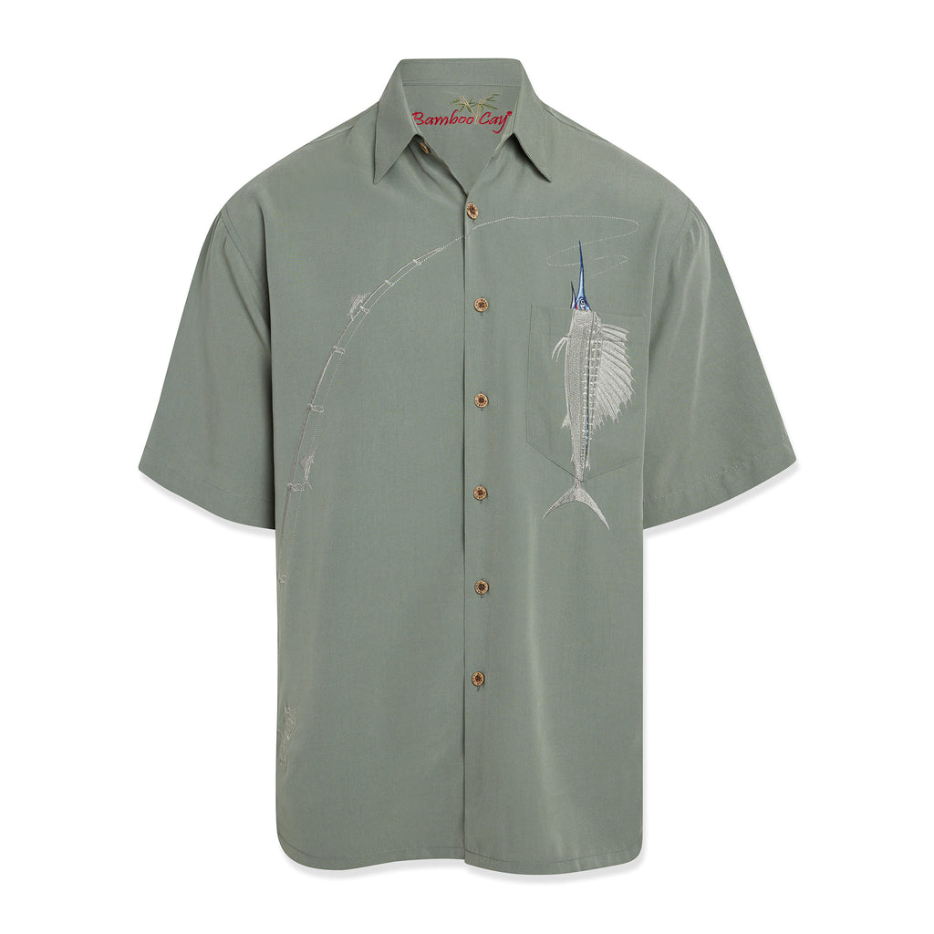 On island time in this button-down from Bamboo Cay, featuring embroidered tonal leaves at wearers chest, button-front closure with authentic coconut buttons and a pointed collar. Modal blended Bamboo Cay fabric gives you an island inspired vacation feeling while worn. Living the island life since 1998, Bamboo Cay designs resort wear with premium materials and tropics inspired embroidered motifs.