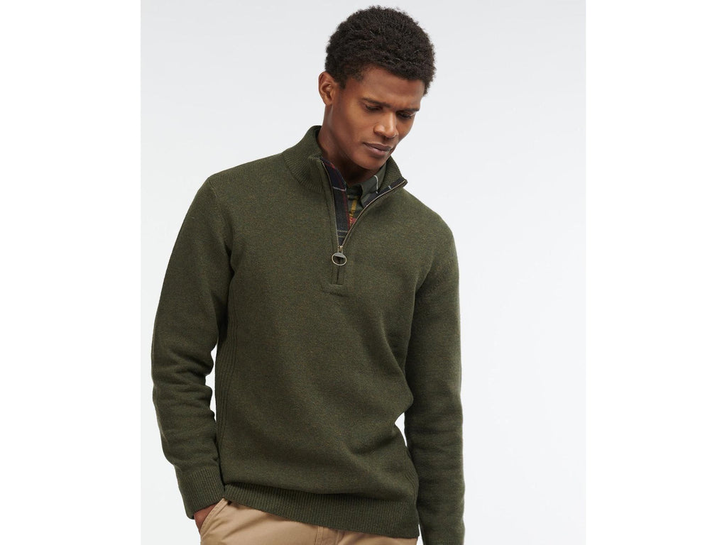 This warm sweater makes an ideal winter layering piece, easy to throw over a shirt or top when extra warmth is required. It's styled with fully fashioned armholes and a cozy ribbed funnel neck, which fastens with a Barbour-branded zip. Ribbed side panels and contrast elbow patches in Barbour's signature Classic Tartan add subtle yet eye-catching extra details.