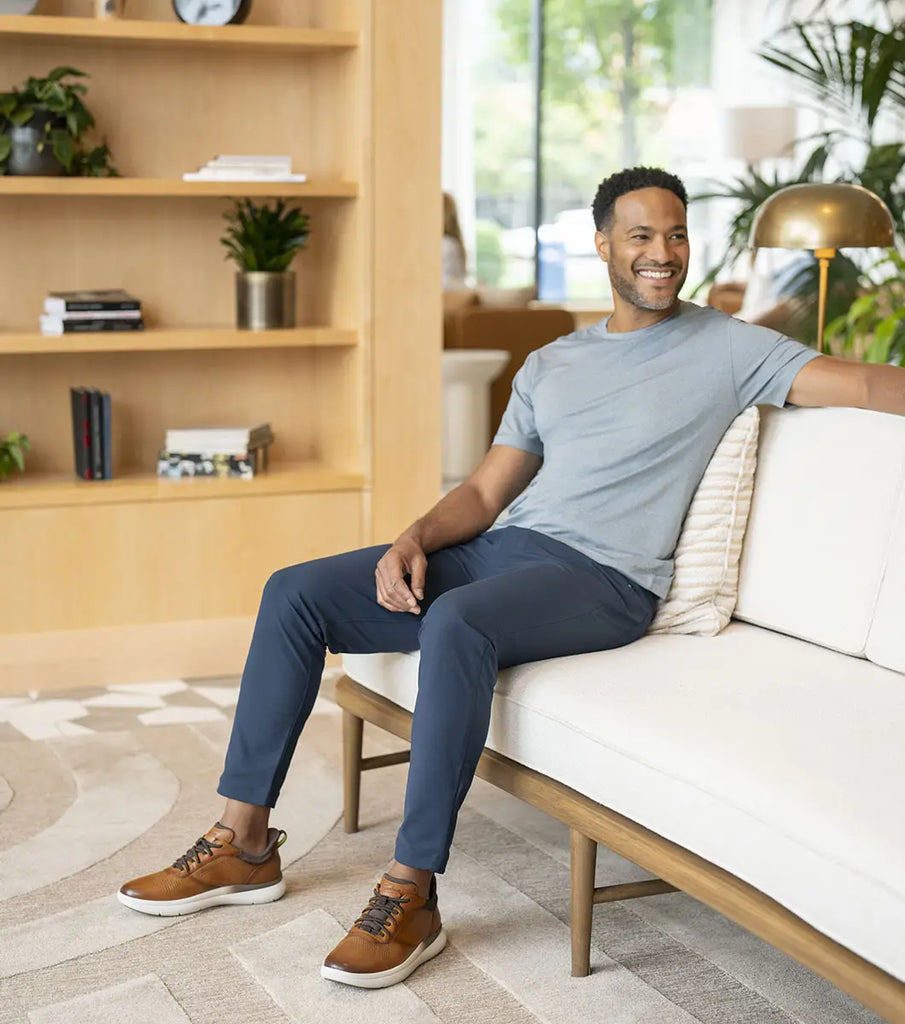 The Florsheim Fleet Perf Toe Elastic Lace Sneaker features a cool perforated leather upper, athletic style outsole, and our SupaStep hands-free heel technology for step and go convenience. The result is a hybrid casual shoe that has the versatility to wear to work, date night, or a weekend away.